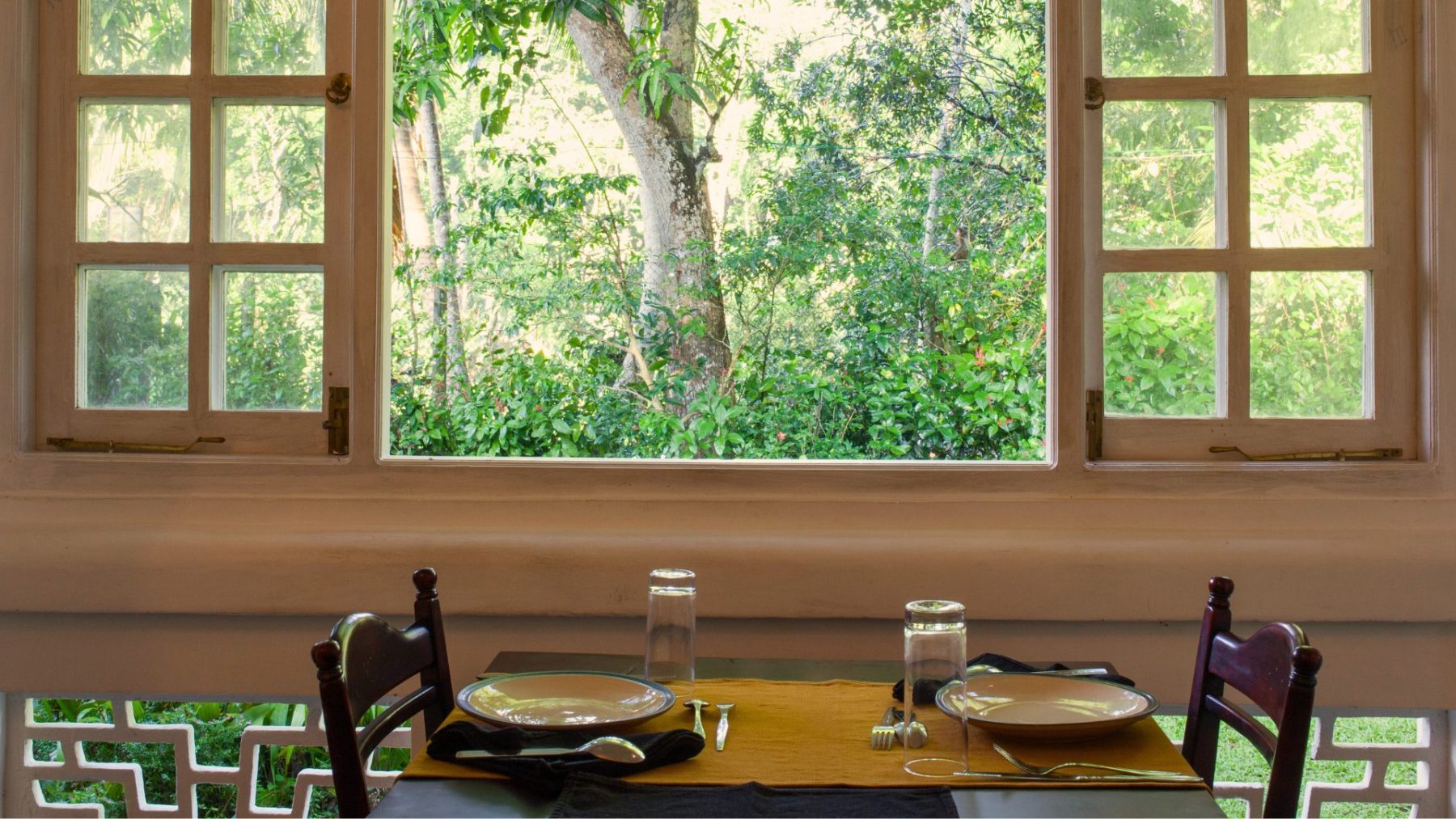 Winding paths lead you beneath green canopies and through medicinal gardens toward our carefully restored colonial villa. Here, open verandahs and quiet communal spaces create a sanctuary for your rest, with dedicated areas for yoga and authentic Ayurvedic treatments that allow you to settle into a rhythm of reflection and healing.