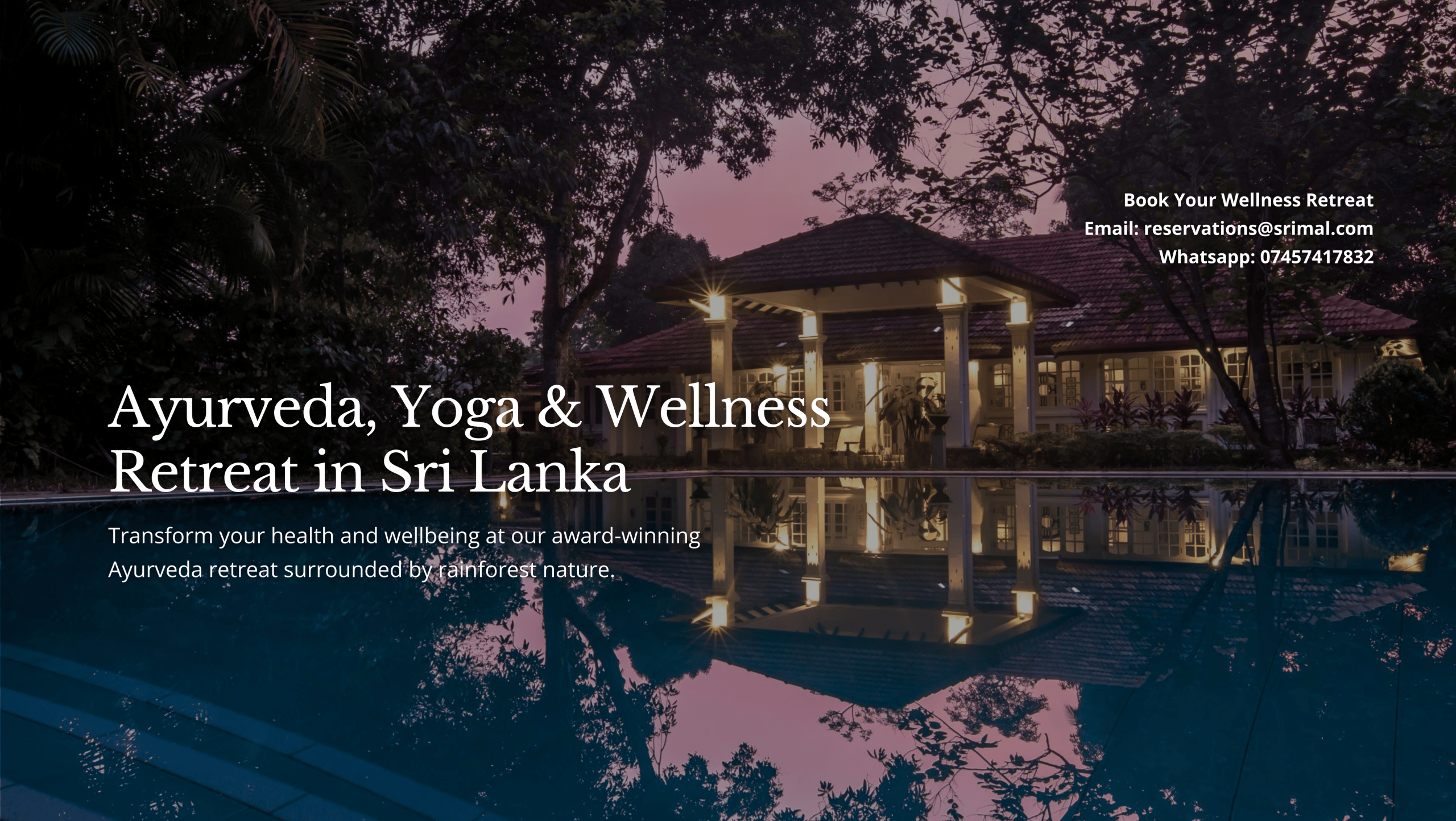 If you would like to book or need more information, kindly email : reservations@srimal.com