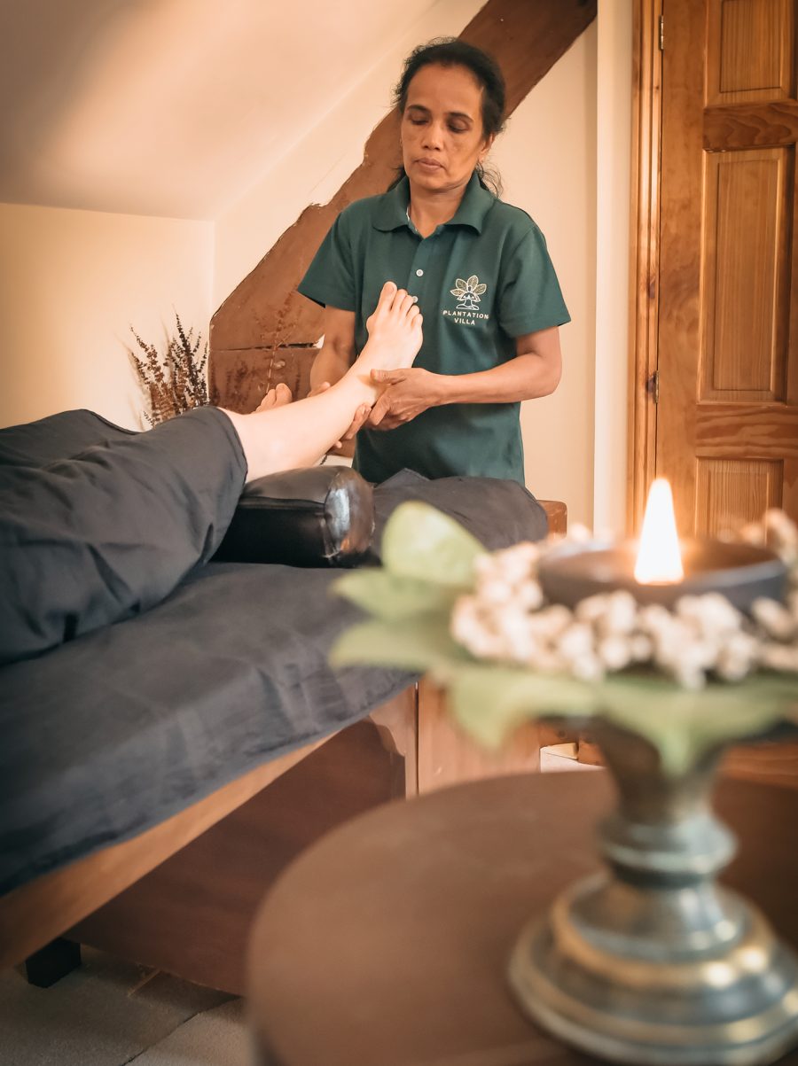 Traditional wooden treatment beds for therapies such as Shirodhara and herbal steam treatments were brought from Sri Lanka. As warm herbal oils are prepared and applied by our therapists, their natural aroma fills the space, creating a deeply immersive setting for Ayurvedic healing.