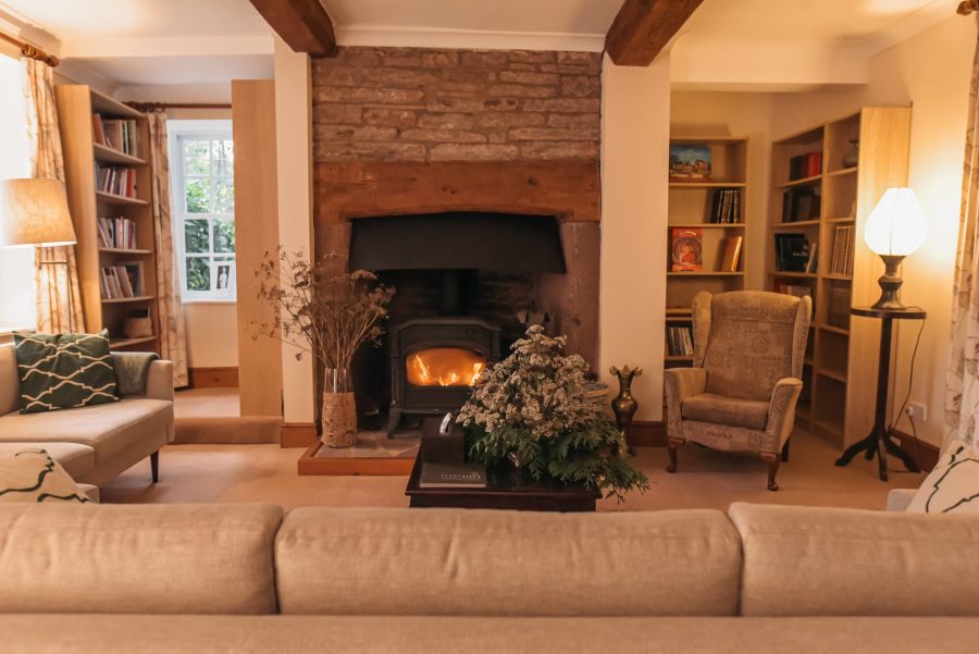 Relax in the farmhouse living room beside a traditional wood-burning fireplace, with a cosy reading library offering a quiet space to slow down and unwind. Or settle into the light-filled conservatory, surrounded by plants, and enjoy a hot cup of freshly picked herbal tea as you take in the stillness of the surroundings.